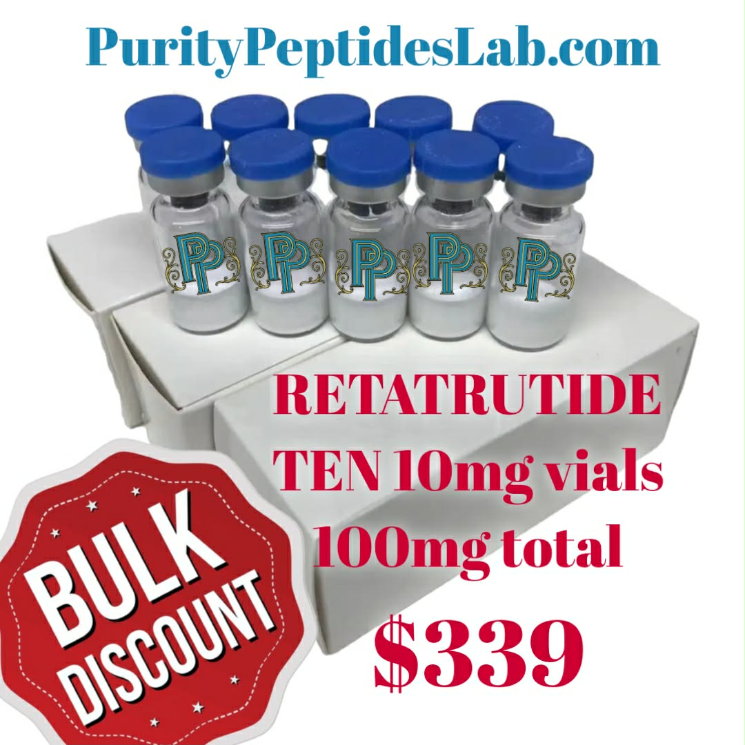 Bulk Retatrutide (10 × 10mg vials) is a research-grade peptide supplied for laboratory investigation into metabolic regulation, glucose homeostasis, weight management models, appetite suppression, insulin sensitivity, and GLP-1/GIP/glucagon receptor triple-agonism pathways.