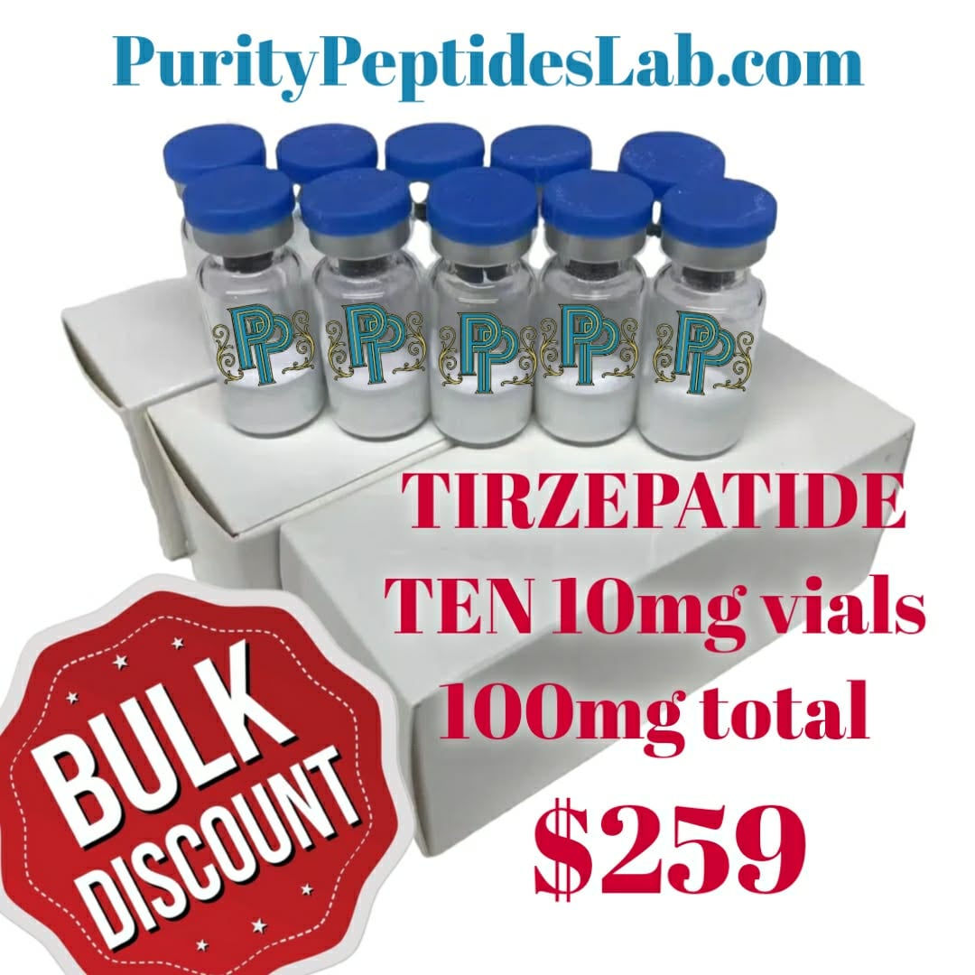 Bulk Tirzepatide is a dual-agonist peptide targeting GLP-1 and GIP receptors, researched for its potential in metabolic studies, body composition models, energy expenditure, fat oxidation, appetite control, and glucose regulation. This 10-vial pack provides 100mg total (10 × 10mg) of high-purity Tirzepatide, supplied strictly for controlled laboratory and in vitro research applications exploring incretin mimetics, obesity models, diabetes pathways, and related endocrine signaling.